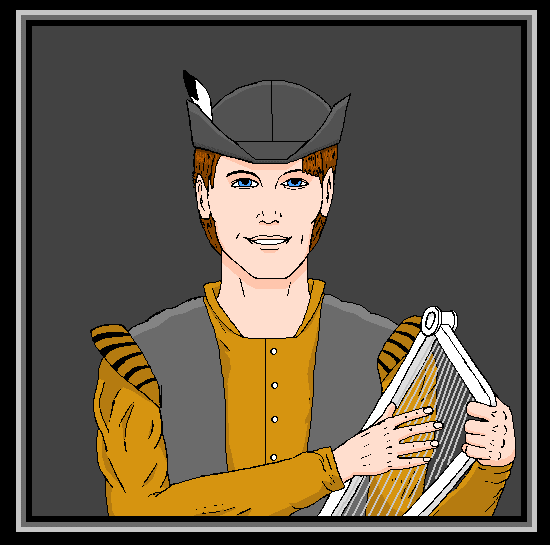 -----Short, but slim Sethanales is a half elf that dresses well but in understated clothes. That is, he always goes out in his hose boots, doublet vest and cap, on cold days or furtive days he will take his cloak. He always carries a map case and his harp slung in its strap. He chooses to dress in simple colors. His hose is dark brown, boots black, doublet tan, vest gray, cap black and his clock is a dark gray. He always seems self-assured in public as most musicians are.